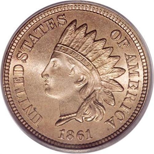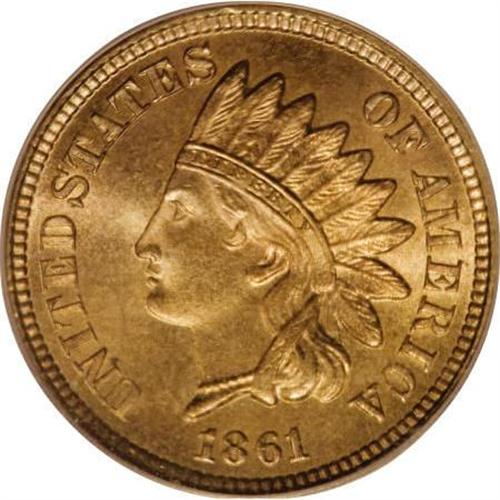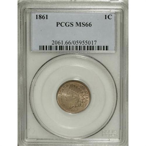 <B>1861 1C MS66 PCGS.</B></I> The golden-orange surfaces of this lovely Premium Gem, surprisingly, much more resemble the typical color of a late-series bronze cent, rather than the more-brownish surfaces on the typical copper-nickel cent. This piece is sharply struck save for the foremost feather tip, and visible distractions, as expected from the grade, are virtually nonexistent. PCGS has graded only nine pieces finer (4/07).<BR><BR><b>Shipping:</b> Coins & Currency (<a target="_blank" href="http://www.heritageauctions.com/common/shipping.php">view shipping information</a>)