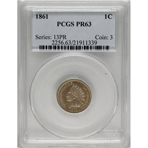 1861 1C PR63 PCGS. Well struck with mildly reflective