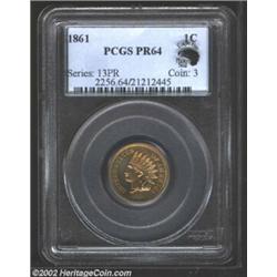 1861 1C PR64 PCGS. A well struck and beautifully preserved near-Gem that has lovely orange-rose colo