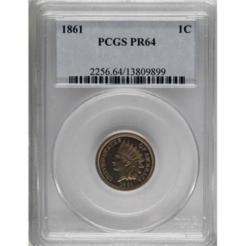 <B>1861 1C PR64 PCGS.</B></I> Richard Snow (2006) writes: "This is the key date in the Proof series, partly due to low mintage (estimated 1,000 pieces), but also because of poor quality of the dies and poor striking quality." A well directed strike translates into sharp detail on the design features of this near-Gem, and copper-gold surfaces yield some field-motif contrast. A few trivial handling marks prevent full Gem status. Population: 44 in 64, 20 finer (7/07).<BR><BR><B>Coin Engraver:</B> James B. Longacre<BR><BR><b>Shipping:</b> Coins & Currency (<a target="_blank" href="http://www.heritageauctions.com/common/shipping.php">view shipping information</a>\)