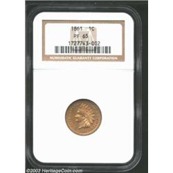 1861 1C PR65 NGC. One of several high grade proof 1861 Cents that we are offering in this sale, both