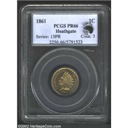 1861 1C PR66 PCGS. Eagle Eye Photo Seal. Ex: Heathgate. This is the single finest proof 1861 Indian.