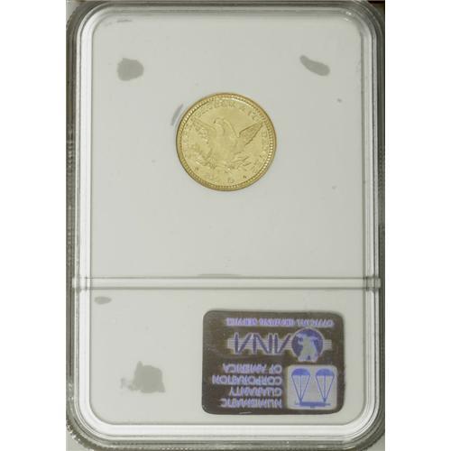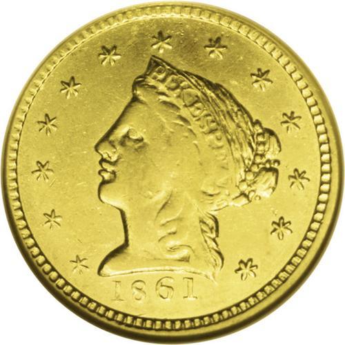 <B>1861 $2 1/2 Clark, Gruber & Co. Quarter Eagle AU58 NGC.</B></I> K-5a, R.4. A clean yellow-gold piece with plentiful luster across the margins and devices. Minor marks between stars 12 and 13 are barely worthy of mention. The centers are softly brought up, as is nearly always the case with this private gold issue. Listed on page 362 of the 2007 <I>Guide Book.</B></I><BR><I>From The Jones Beach Collection.</B></I><BR><BR><b>Shipping:</b> Coin/Currency (<a target="_blank" href="http://www.heritageauctions.com/common/shipping.php">view shipping information</a>)