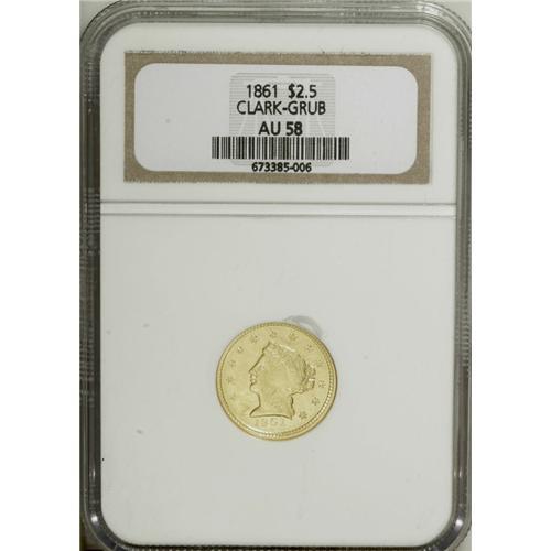 1861 $2 1/2 Clark, Gruber & Co. Quarter Eagle AU58 NGC