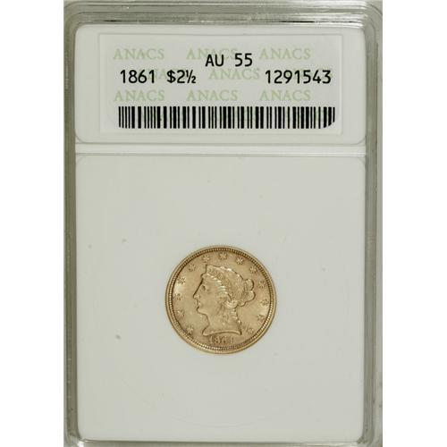 1861 $2 1/2 New Reverse, Type Two AU55 ANACS. NGC
