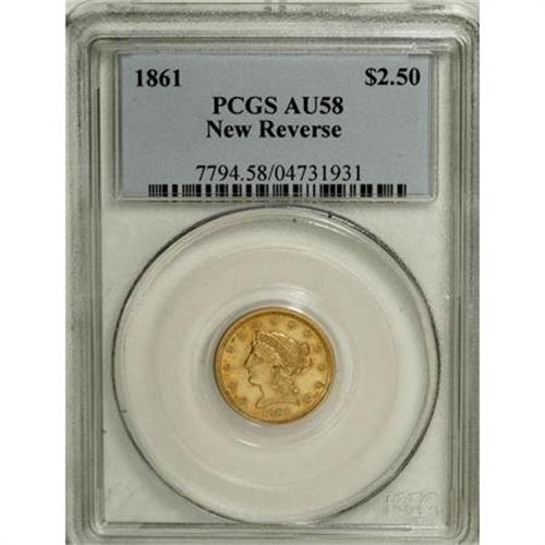 1861 $2 1/2 New Reverse, Type Two AU58 PCGS. PCGS