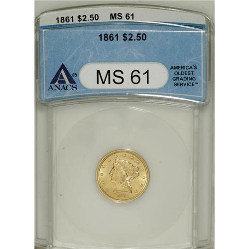 1861 $2 1/2 New Reverse, Type Two MS61 ANACS. NGC Cens