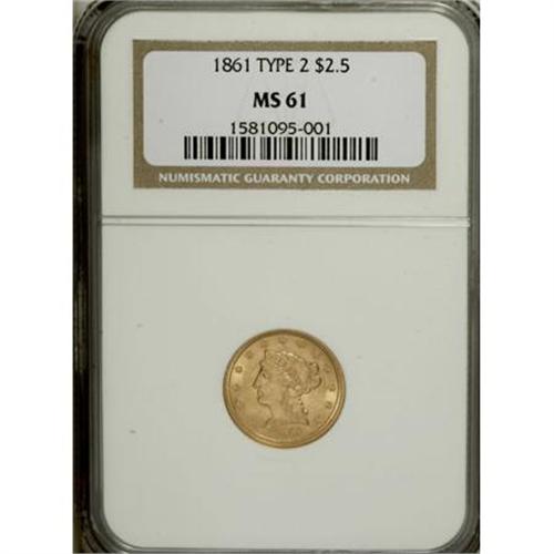 1861 $2 1/2 New Reverse, Type Two MS61 NGC