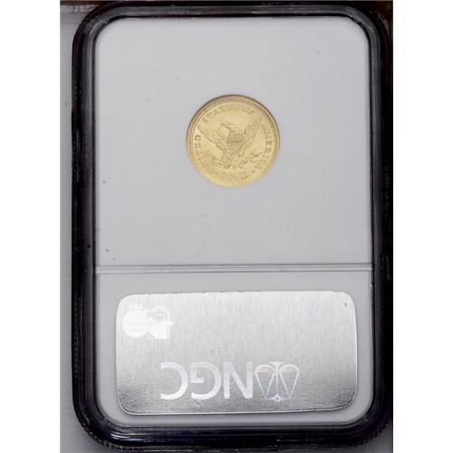 <B>1861 $2 1/2 New Reverse, Type Two MS62 NGC.</B></I> Peach-gold surfaces display bright luster and scattered contact marks on Liberty's portrait and in the fields. The design elements are well impressed throughout.