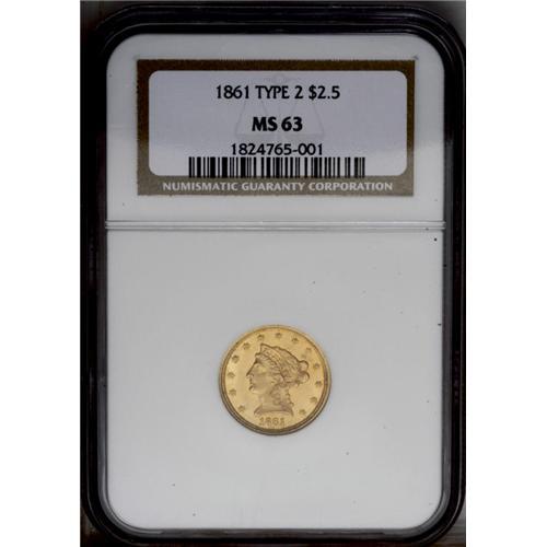 "1861 $2 1/2 New Reverse, Type Two MS63 "