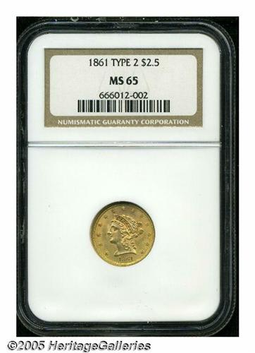1861 $2 1/2 New Reverse, Type Two MS65 NGC. This