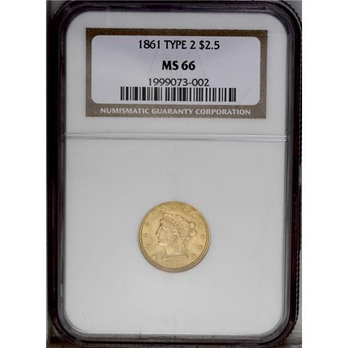 1861 $2 1/2 New Reverse, Type Two MS66 NGC. A precisel