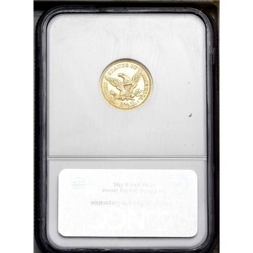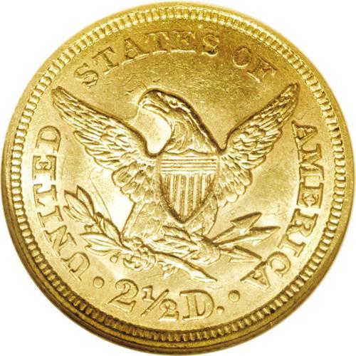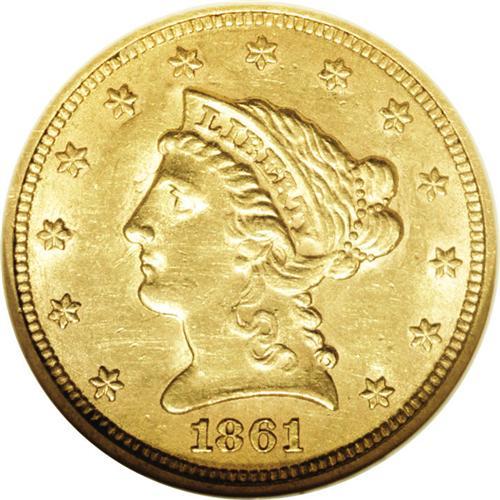 <B>1861<$2 1/2> Old Reverse, Type One AU58 NGC.</B></I> Beginning in 1859 a new reverse hub was used to strike most quarter eagles. However, in 1859, 1860, and 1861 the old reverse hub was used occasionally. Coins struck from the old hub constitute a diminishing number with each successive year and the 1861 is very seldom encountered. The old (pre-1859) hub can be distinguished by the lowest arrowhead almost touching the CA in AMERICA. The space between the arrowheads is also more closed than on the new hub, the lettering is larger, the eagle's claws are closed, and the period after the D is more distant. This particular example has especially smooth surfaces with apricot-gold patina. The design elements are well struck, though the feathers on the eagle's left (facing) leg are soft. Neither side shows any mentionable abrasions, though some wispy marks are visible overall that are consistent with the grade. <BR><BR><B>Important notice:</B> Heritage usually auctions material at the rate of 200-250 lots per hour. On some occasions eBay Live bid software or the Internet may not be able to keep up with the pace of the auction. We recommend placing a realistic absentee bid now as insurance to avoid disappointment. Occasionally the auctioneer may eliminate or reject an eBay Live bid, and the auctioneer may also reopen a lot after the close of the eBay live bidding (usually because we missed an audience bid), and may reject your bid even if it shows you as the winning bidder. By bidding via eBay Live, you agree that Heritage may award the lot to another bidder at its sole discretion under the circumstances described above or any other reasonable circumstances. Since eBay bids are not shown to us until we open the lot on the floor, we treat those bids just like floor bids. In most cases the floor responds before the eBay bid is presented to us, due to Internet lag time, so for consistency we have made it a policy that floor bids are always considered first over tie eBay live bids. Also please note that all Heritage lots purchased through eBay Live carry a 20% Buyer's Premium. Please make sure you read the Terms and Conditions before you bid. This lot is being auctioned in conjunction with a live floor auction by Heritage Galleries & Auctioneers. All final auction and invoice information will be supplied by Heritage Galleries & Auctioneers, and all other information should be considered preliminary. Lot:2406 <BR><BR><B>Winning Notification and Billing:</B> After the FINAL session in this auction is complete, Heritage will send e-mail and snail mail invoices. This process normally takes several days. All final auction and invoice information will be supplied by Heritage Galleries & Auctioneers, and all other information should be considered preliminary. <BR><BR>This auction will be conducted on a live auction floor and over the Internet through eBay Live. If you choose to place an absentee bid, please take a moment to <font color='#0000ff'><u><a href='http://pages.ebay.com/liveauctions/help/before/laabsentee.html'>learn how eBay Live absentee bidding works</a></u></font><font color='#000000'>