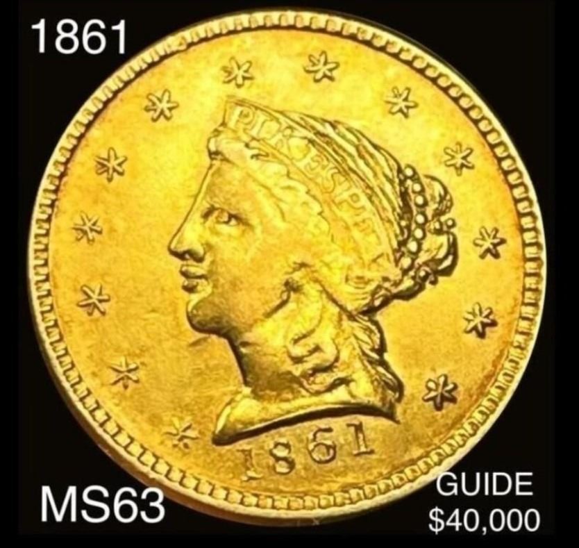 1861 $2.50 Gold Clark Gruber Denver CHOICE BU