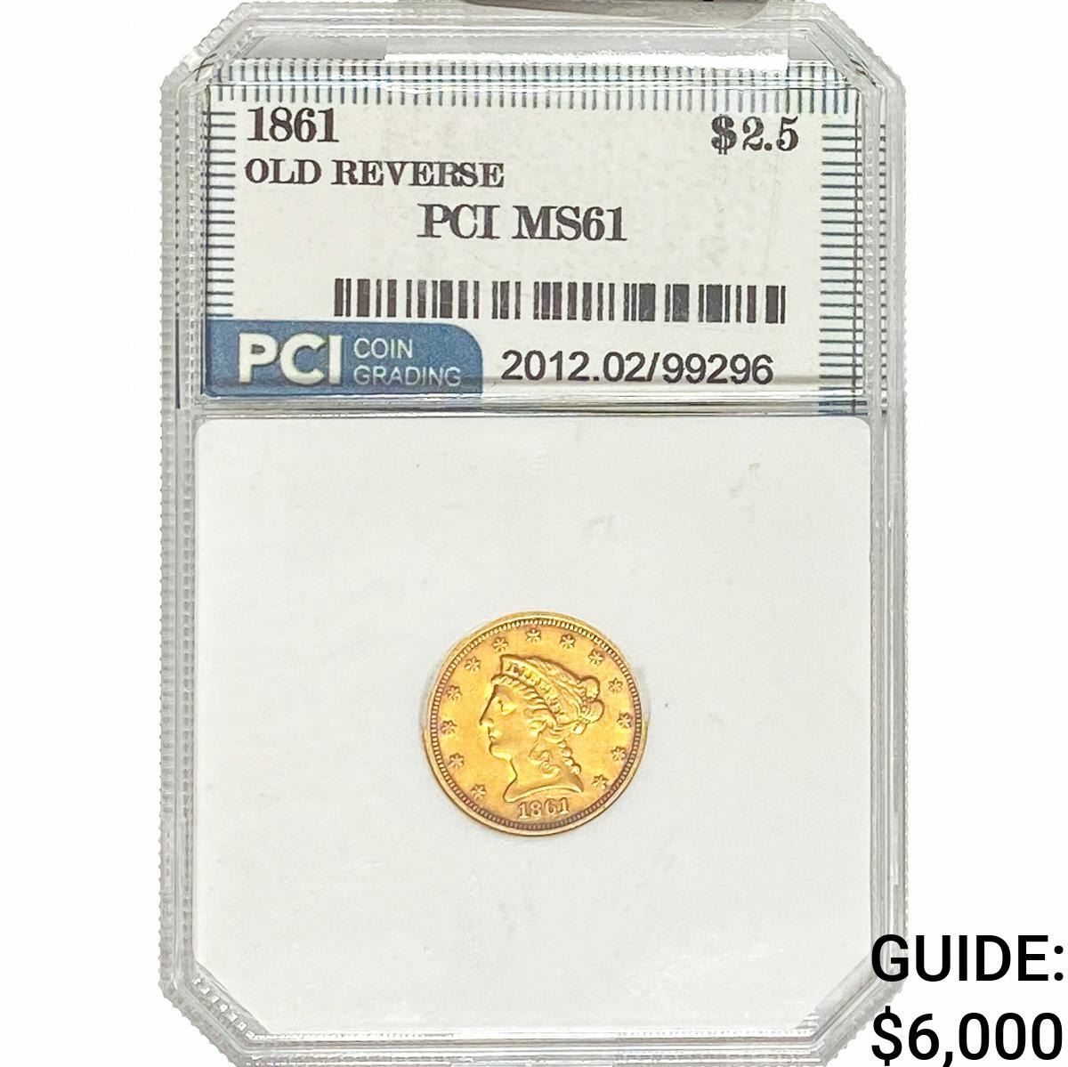 1861 $2.50 Gold Quarter Eagle PCI MS61 Old Rev
