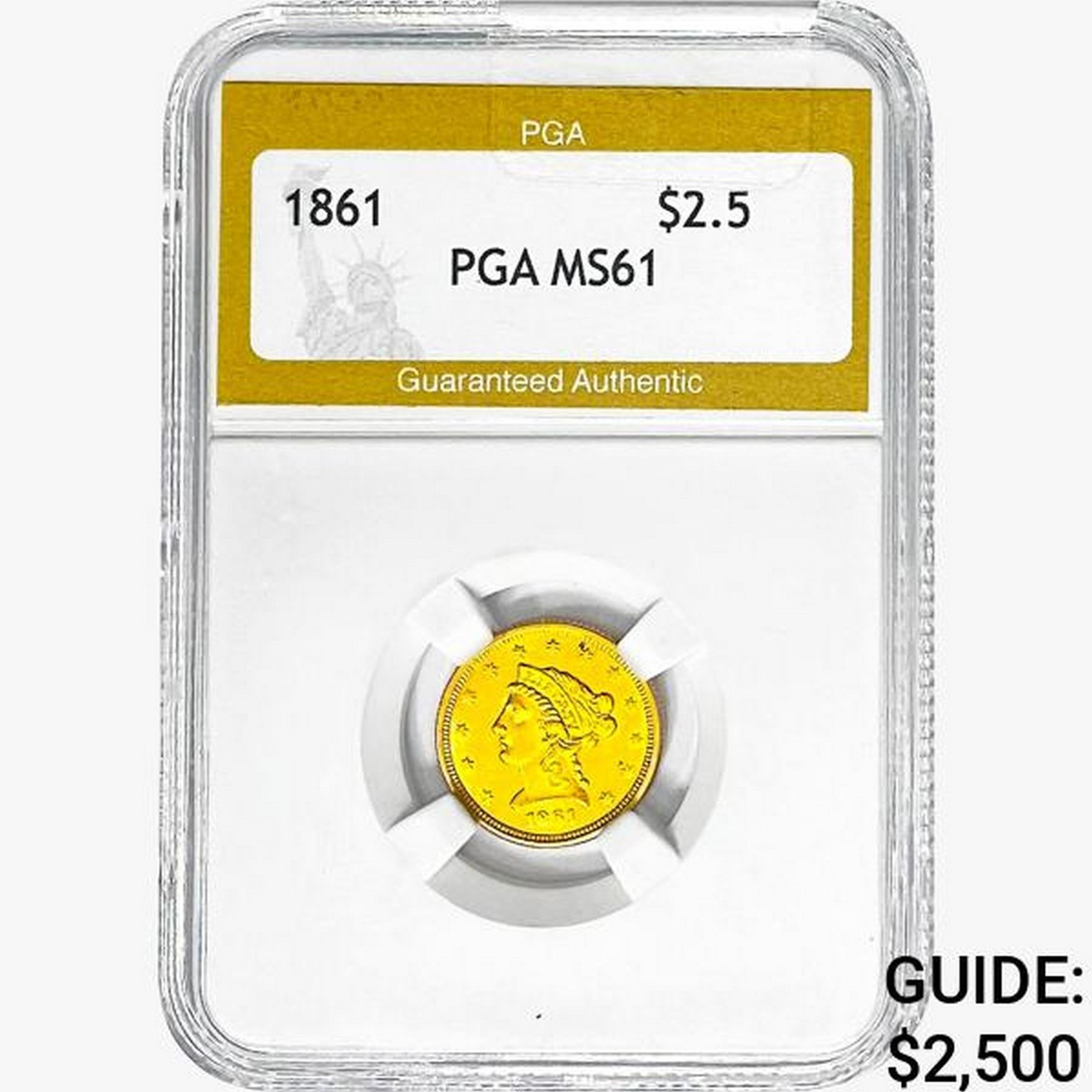 1861 $2.50 Gold Quarter Eagle PGA MS61