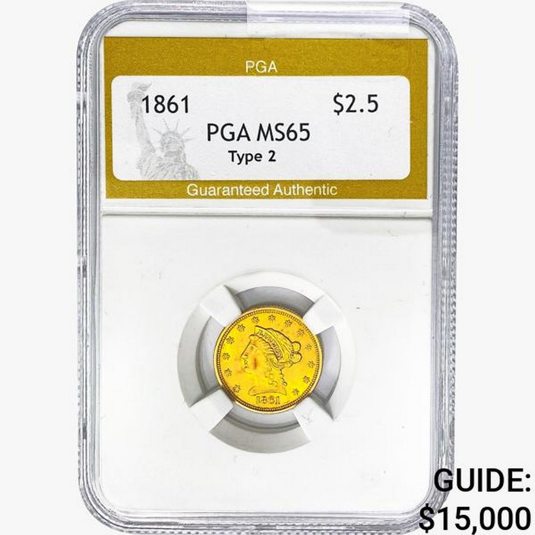 1861 $2.50 Gold Quarter Eagle PGA MS65 TYPE 2
