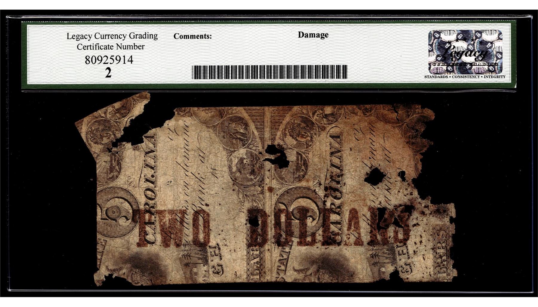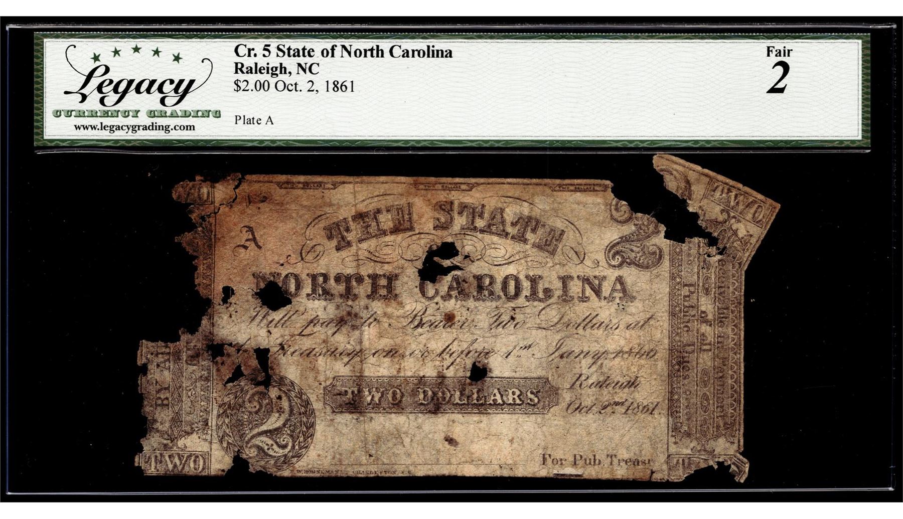 1861 $2 State of North Carolina Ralieigh, NC Obsolete Note Legacy Fair 2