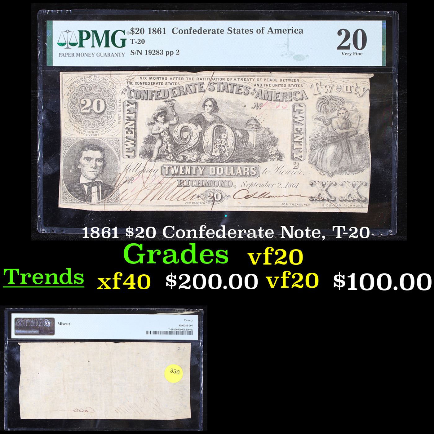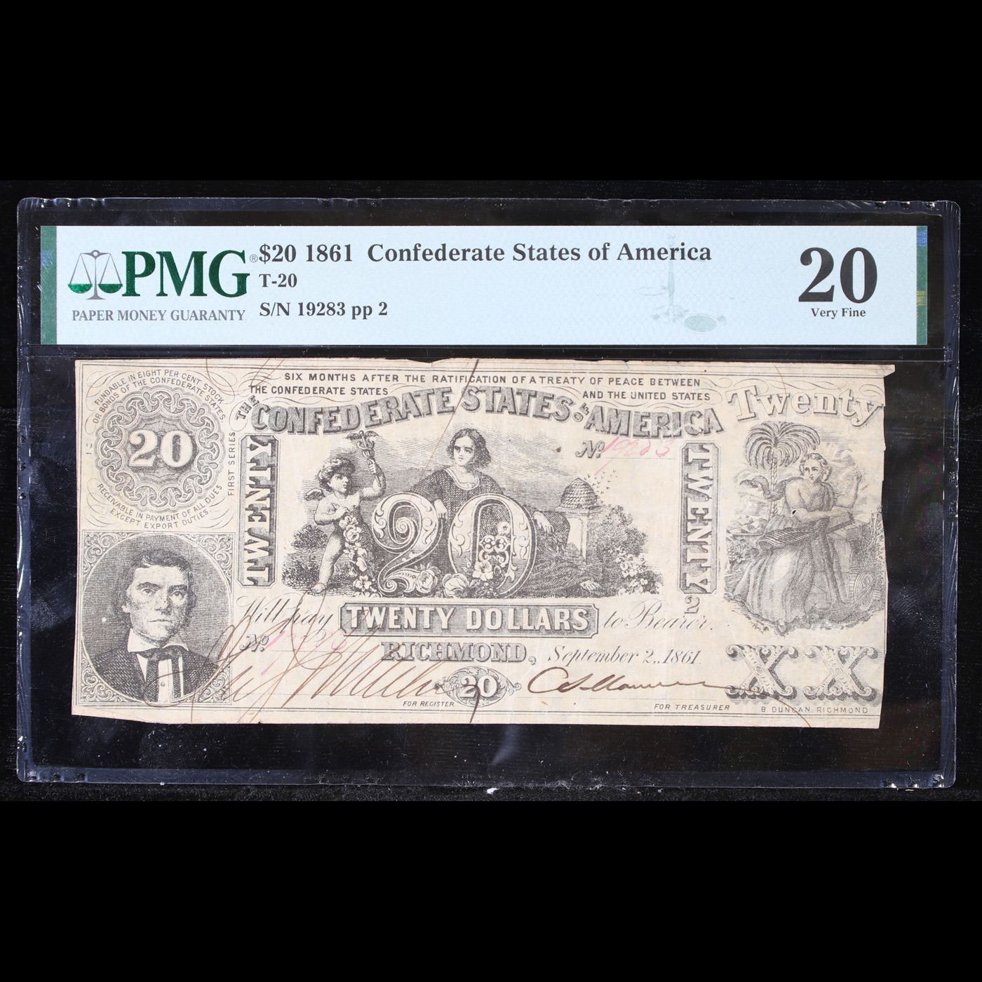 1861 $20 Confederate Note, T-20 Graded vf20 By PMG