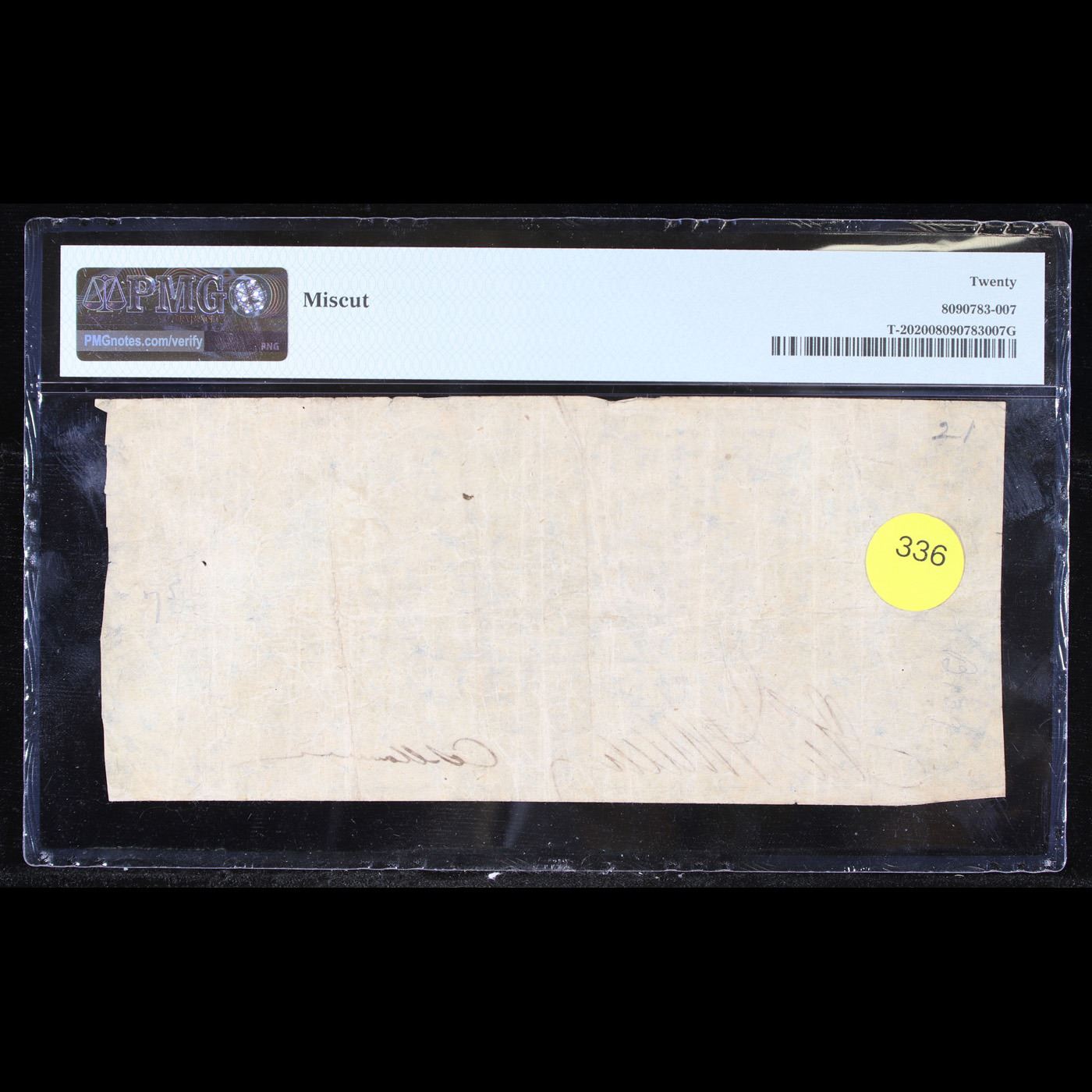 1861 $20 Confederate Note, T-20 Graded vf20 By PMG. This $20 Confederate note shows a seated woman (Industry) behind a large 20 with cupid and a beehive in the center. On the right side of the note is a seated woman (Hope) with an anchor and a palm tree. In the lower left corner of the note is a drawing of Alexander Stephens, Vice- President of the Confederate States. This note was printed with black ink on either plain or watermarked paper.