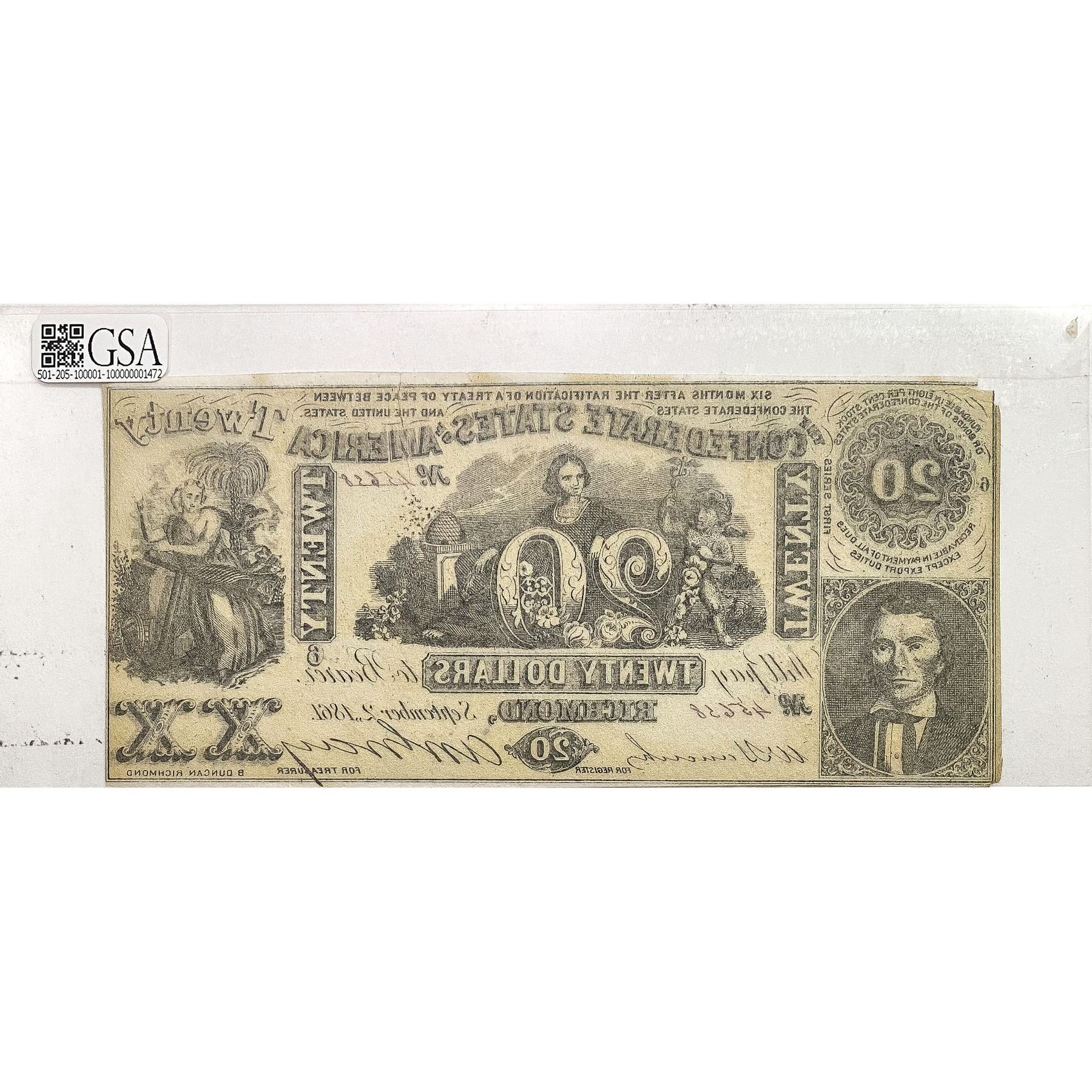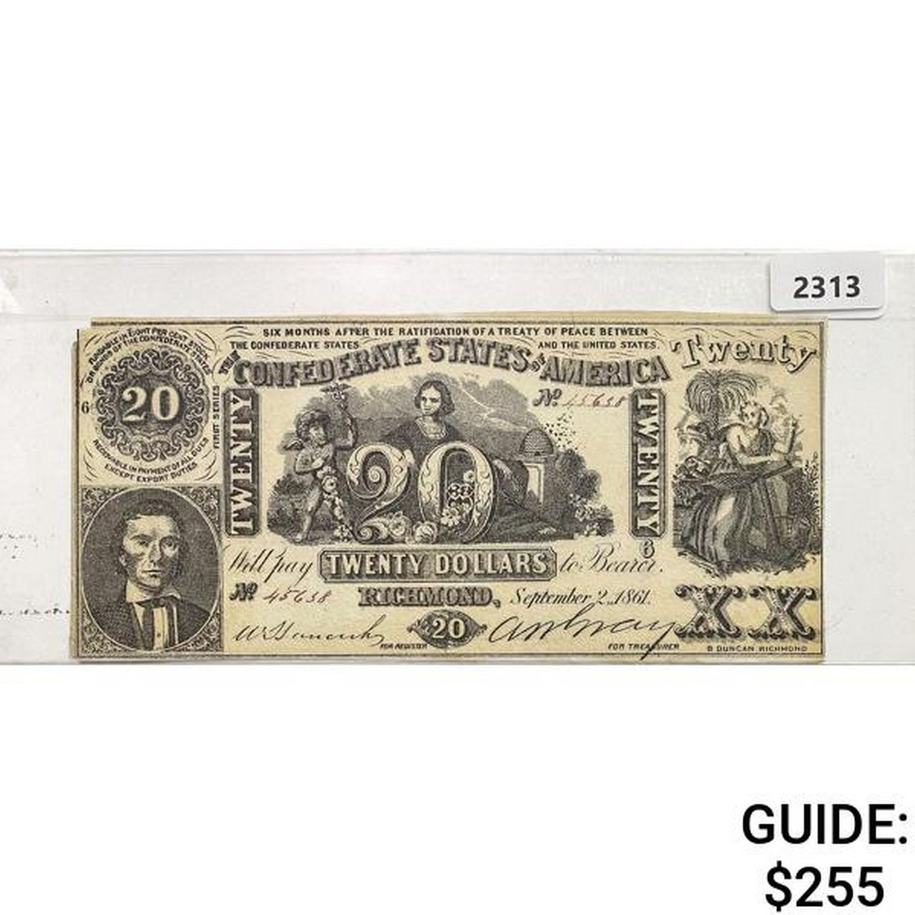 1861 $20 Confederate States of America Note