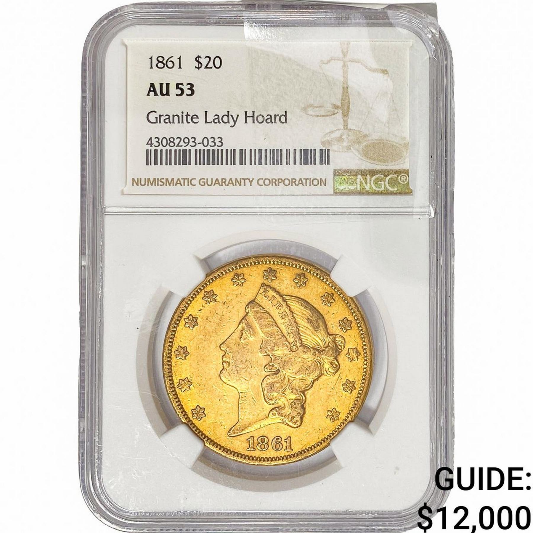 1861 $20 Gold Double Eagle NGC AU53 Granite Lady Hoard