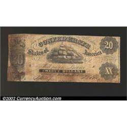1861 $20 Large Sailing Vessel; "20" on left, T-9, Fine-VF. Some minor staining is present.