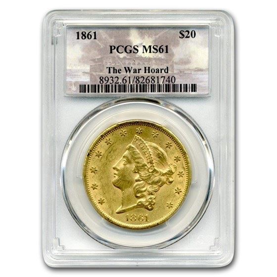 One piece 1861 $20 Liberty Gold Double Eagle MS-61 PCGS (War Hoard)