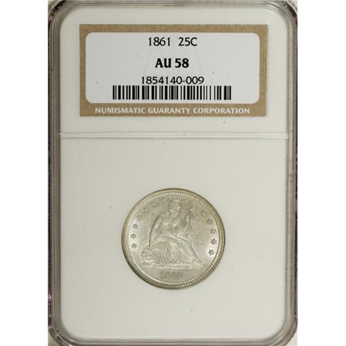 1861 25C AU58 NGC. NGC Census: (146/582). PCGS Pop