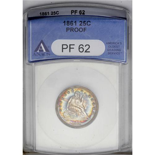 1861 25C PR62 ANACS. A dappled blend of amber and stee 1861[25C] PR62 ANACS.