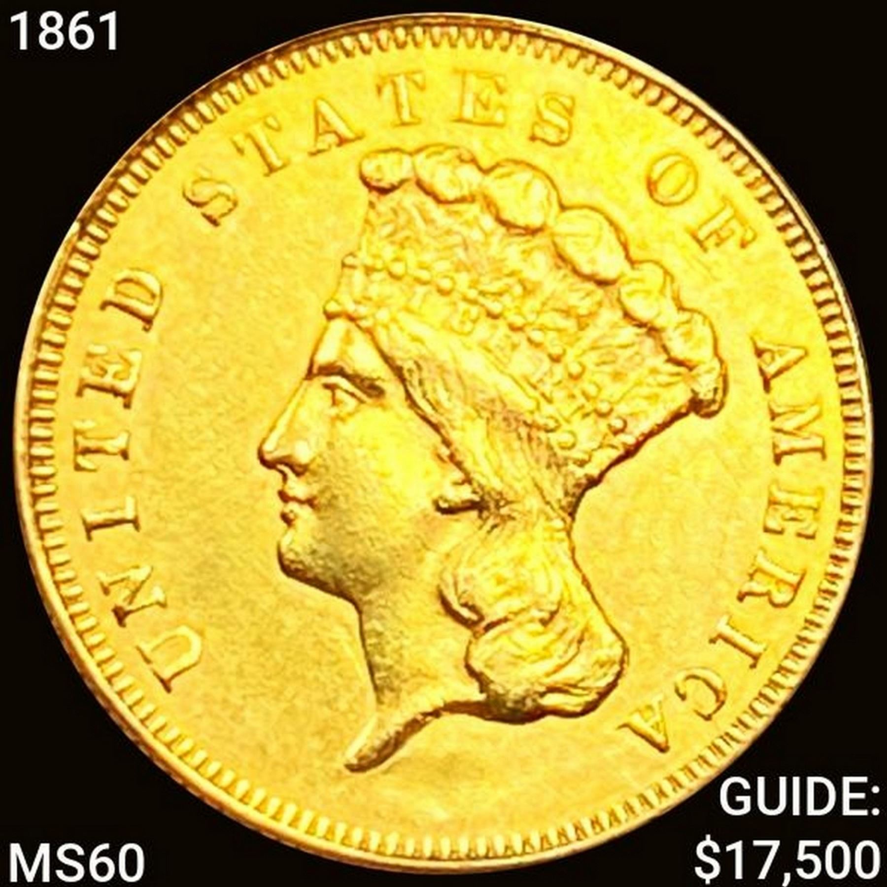 1861 $3 Gold Piece UNCIRCULATED