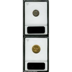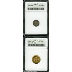 1861 3CS MS61 ANACS, well struck, save for the arr <B>1861 3CS MS61 ANACS,</B></I> well struck, save for the arrow feathers, and light beige-gray patina; and an <B>1891 Quarter Eagle AU55 ANACS,</B></I> Doubled Die Reverse, nicely struck, and a curvilinear lint mark beneath Liberty's eye. 2 Coins <BR><BR><B>Important notice:</B> Heritage usually auctions material at the rate of 200-250 lots per hour. On some occasions eBay Live bid software or the Internet may not be able to keep up with the pace of the auction. We recommend placing a realistic absentee bid now as insurance to avoid disappointment. Occasionally the auctioneer may eliminate or reject an eBay Live bid, and the auctioneer may also reopen a lot after the close of the eBay live bidding (usually because we missed an audience bid), and may reject your bid even if it shows you as the winning bidder. By bidding via eBay Live, you agree that Heritage may award the lot to another bidder at its sole discretion under the circumstances described above or any other reasonable circumstances. Since eBay bids are not shown to us until we open the lot on the floor, we treat those bids just like floor bids. In most cases the floor responds before the eBay bid is presented to us, due to Internet lag time, so for consistency we have made it a policy that floor bids are always considered first over tie eBay live bids. Also please note that all Heritage lots purchased through eBay Live carry a 20% Buyer's Premium. Please make sure you read the Terms and Conditions before you bid. This lot is being auctioned in conjunction with a live floor auction by Heritage Galleries & Auctioneers. All final auction and invoice information will be supplied by Heritage Galleries & Auctioneers, and all other information should be considered preliminary. Lot:5475
