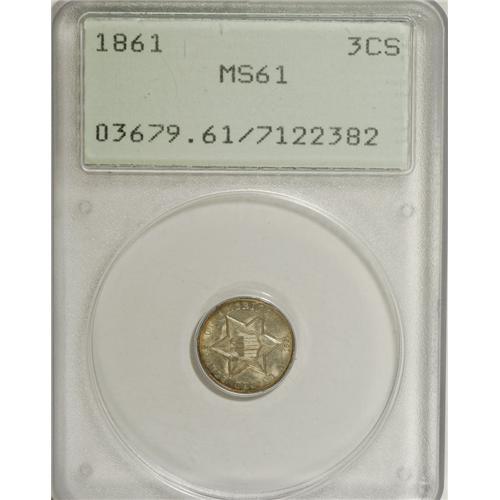 1861 3CS MS61 PCGS. PCGS Population (19/519). NGC