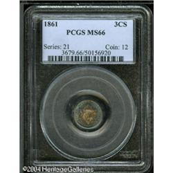 1861 3CS MS66 PCGS. Boldly struck, save for flatne 1861 3CS MS66 PCGS.