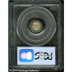 1861 3CS MS66 PCGS. Boldly struck, save for flatne <B>1861 3CS MS66 PCGS.</B></I> Boldly struck, save for flatness in a few of the stars, with a lovely mix of aqua-blue, gold, and lavender colors on the obverse. The reverse center area is primarily silver-gray with a ring of aqua-blue and lavender around the borders. This Type Three silver three cent piece will make a fine addition to a high-grade type set. Population: 60 in 66, 21 finer (10/04). <BR><BR><B>Important notice:</B> Heritage usually auctions material at the rate of 200-250 lots per hour. On some occasions eBay Live bid software or the Internet may not be able to keep up with the pace of the auction. We recommend placing a realistic absentee bid now as insurance to avoid disappointment. Occasionally the auctioneer may eliminate or reject an eBay Live bid, and the auctioneer may also reopen a lot after the close of the eBay live bidding (usually because we missed an audience bid), and may reject your bid even if it shows you as the winning bidder. By bidding via eBay Live, you agree that Heritage may award the lot to another bidder at its sole discretion under the circumstances described above or any other reasonable circumstances. Since eBay bids are not shown to us until we open the lot on the floor, we treat those bids just like floor bids. In most cases the floor responds before the eBay bid is presented to us, due to Internet lag time, so for consistency we have made it a policy that floor bids are always considered first over tie eBay live bids. Also please note that all Heritage lots purchased through eBay Live carry a 20% Buyer's Premium. Please make sure you read the Terms and Conditions before you bid. This lot is being auctioned in conjunction with a live floor auction by Heritage Galleries & Auctioneers. All final auction and invoice information will be supplied by Heritage Galleries & Auctioneers, and all other information should be considered preliminary. Lot:5477