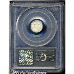 <B>1861<3CS> MS67 PCGS.</B></I> A lustrous example with excellent eye appeal for the grade, this Superb Gem is well-struck on both sides and has rich luster that is seldom equaled on coins of this design. The surfaces are essentially mark-free (especially so since any visible marks on a coin of this size are likely to be consequential), and the aesthetic appeal is enhanced by delicate champagne toning that clings to both sides. Although PCGS has graded a handful of coins at this grade level (19 to date, to be exact), it is currently tied for the finest certified by that grading service as no higher grade has yet been awarded. <BR><BR><B>Important notice:</B> Heritage usually auctions material at the rate of 200-250 lots per hour. On some occasions eBay Live bid software or the Internet may not be able to keep up with the pace of the auction. We recommend placing a realistic absentee bid now as insurance to avoid disappointment. Occasionally the auctioneer may eliminate or reject an eBay Live bid, and the auctioneer may also reopen a lot after the close of the eBay live bidding (usually because we missed an audience bid), and may reject your bid even if it shows you as the winning bidder. By bidding via eBay Live, you agree that Heritage may award the lot to another bidder at its sole discretion under the circumstances described above or any other reasonable circumstances. Since eBay bids are not shown to us until we open the lot on the floor, we treat those bids just like floor bids. In most cases the floor responds before the eBay bid is presented to us, due to Internet lag time, so for consistency we have made it a policy that floor bids are always considered first over tie eBay live bids. Also please note that all Heritage lots purchased through eBay Live carry a 20% Buyer's Premium. Please make sure you read the Terms and Conditions before you bid.