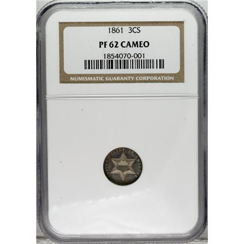 1861 3CS PR62 Cameo NGC. This flashy specimen has ligh