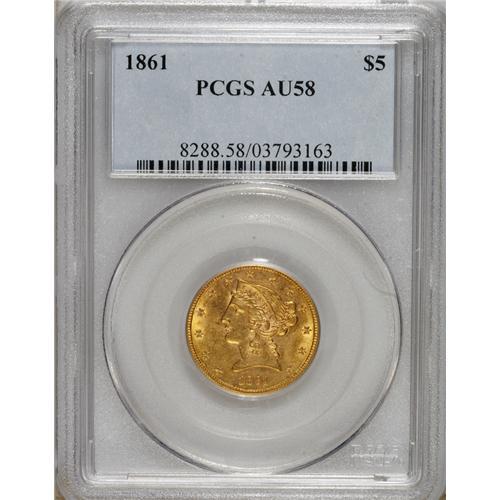 1861 $5 AU58 PCGS. PCGS Population (96/166). NGC C