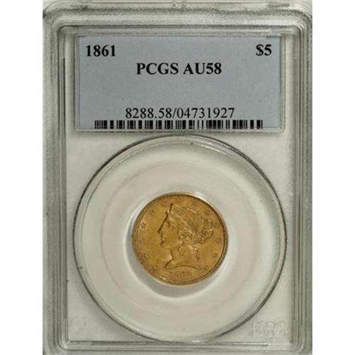 1861 $5 AU58 PCGS. PCGS Population (96/166). NGC C