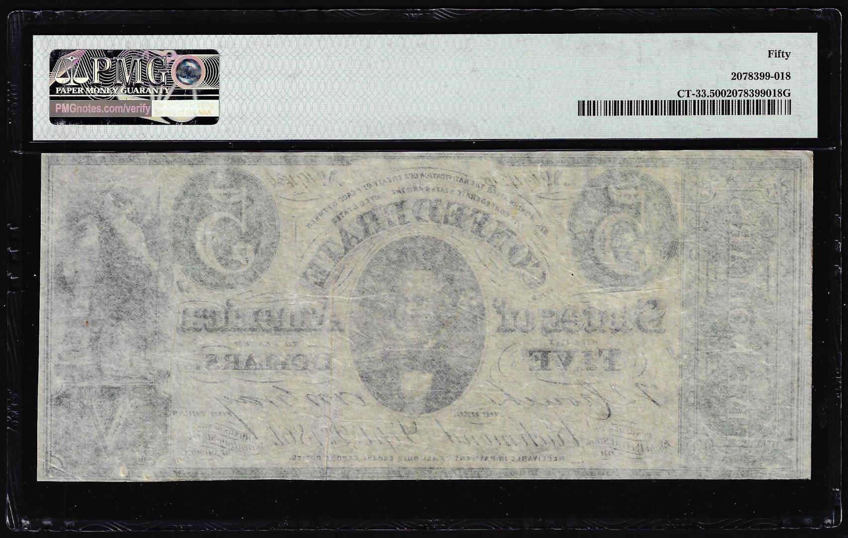 1861 $5 Confederate States Contemporary Counterfeit CT-33 PMG About Uncirculated 50