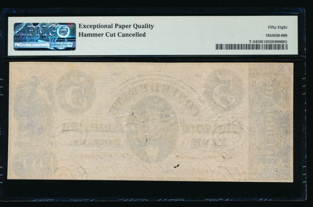 One 1861 $5 Confederate States of America Note PMG 58EPQ.