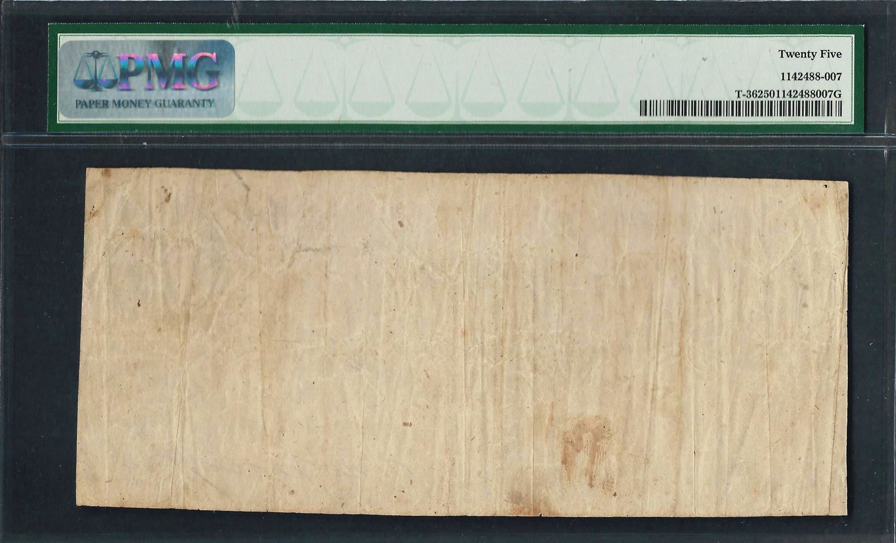 One 1861 $5 Confederate States of America Note T-36 PMG Very Fine 25. PMG Certified.