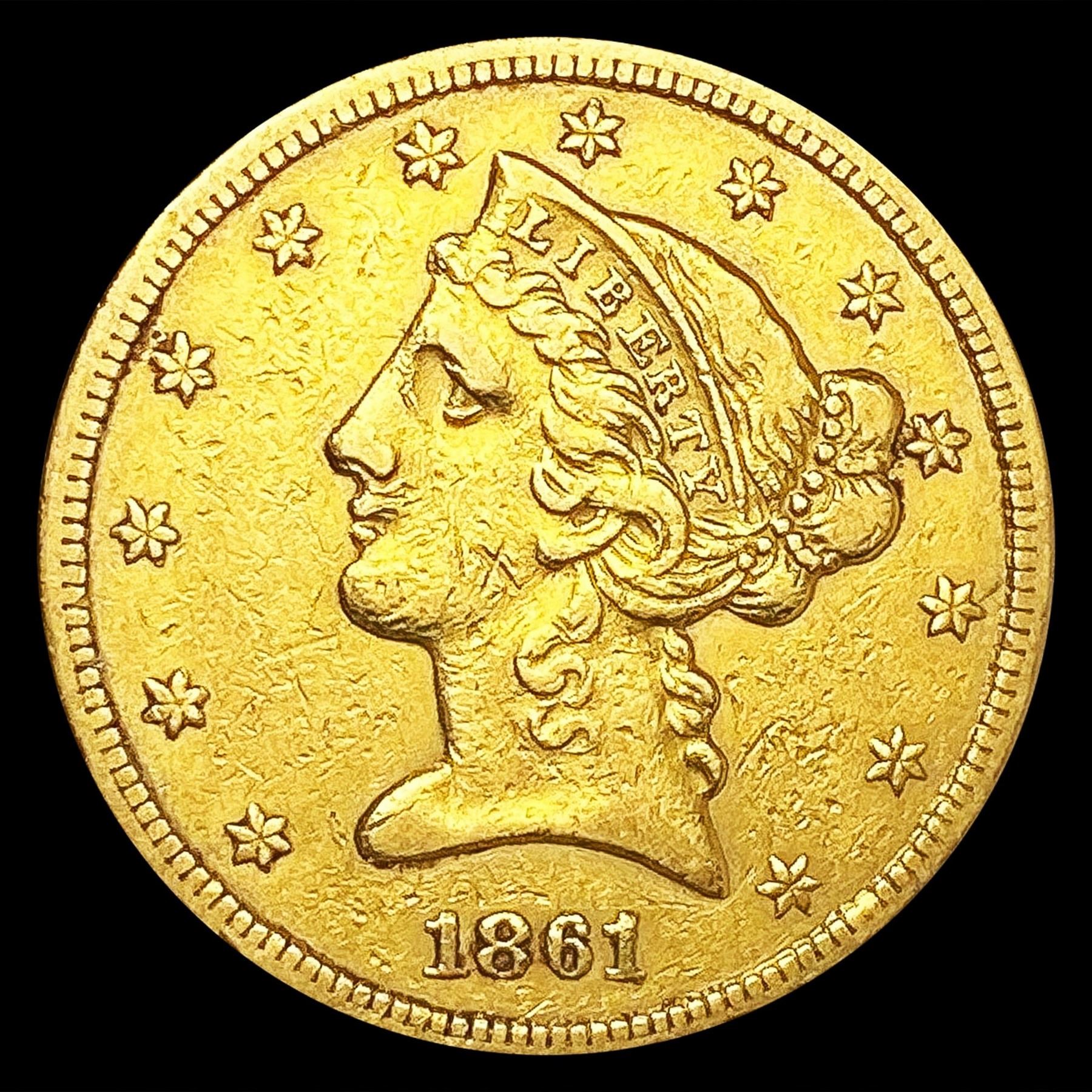 1861 $5 Gold Half Eagle CLOSELY UNCIRCULATED