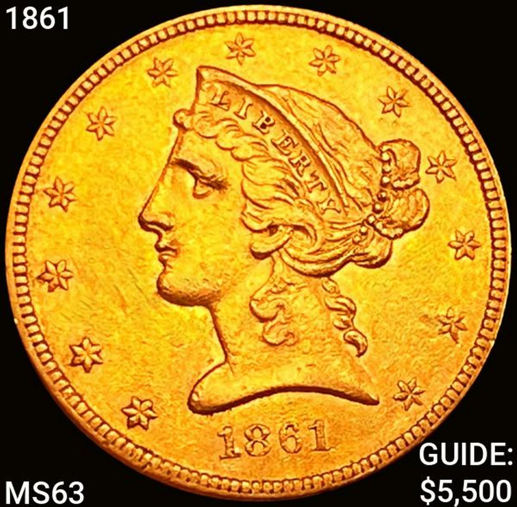 1861 $5 Gold Half Eagle NICELY CIRCULATED+