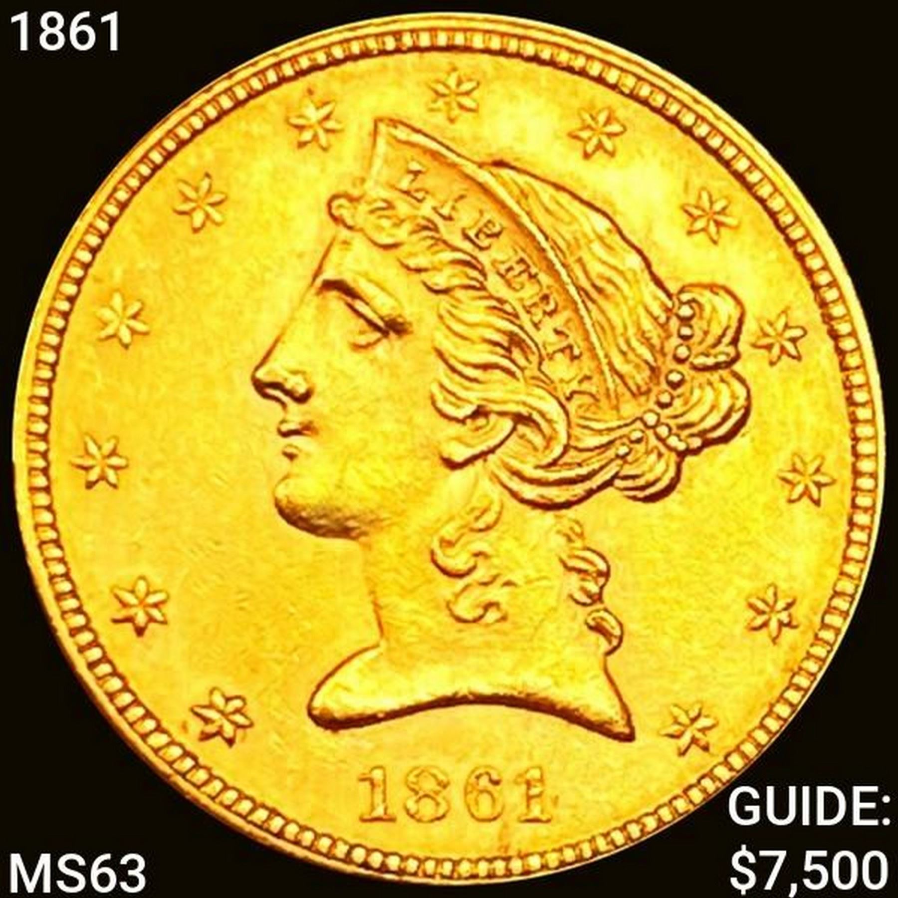 1861 $5 Gold Half Eagle UNCIRCULATED