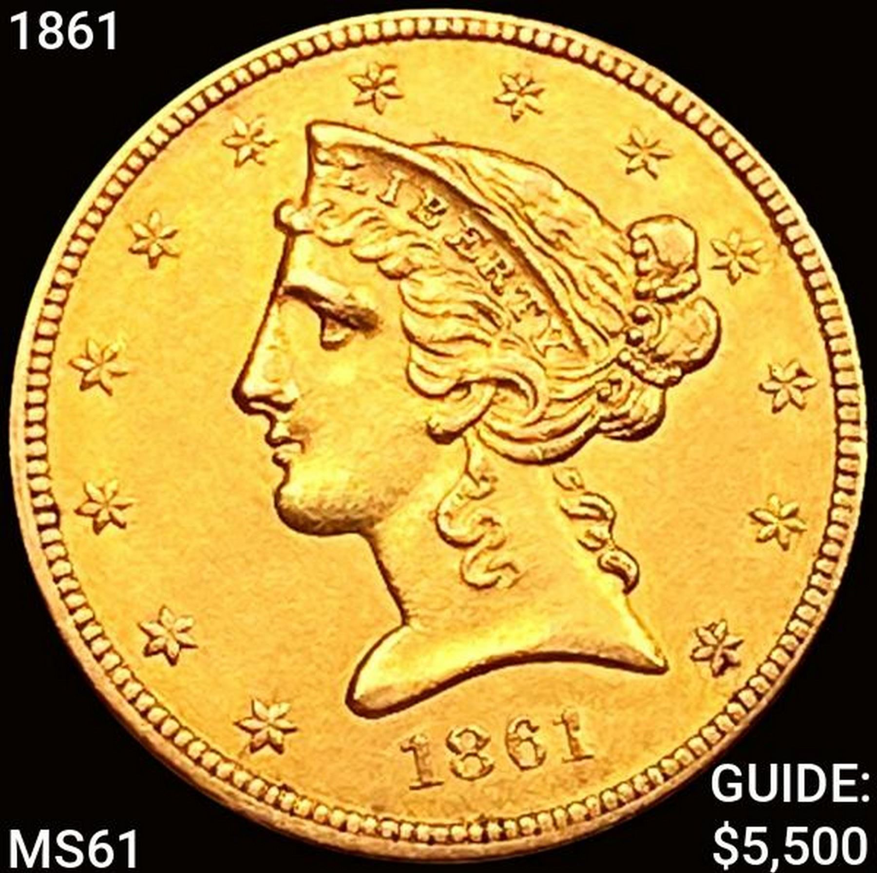 1861 $5 Gold Half Eagle UNCIRCULATED