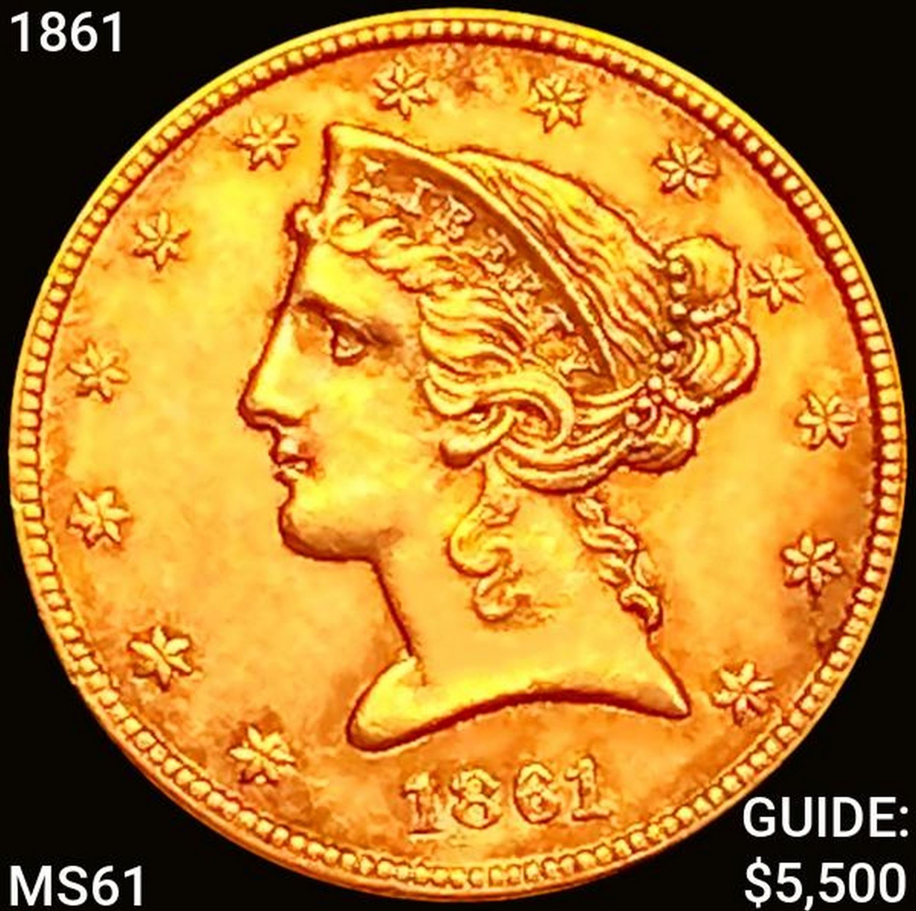 1861 $5 Gold Half Eagle UNCIRCULATED