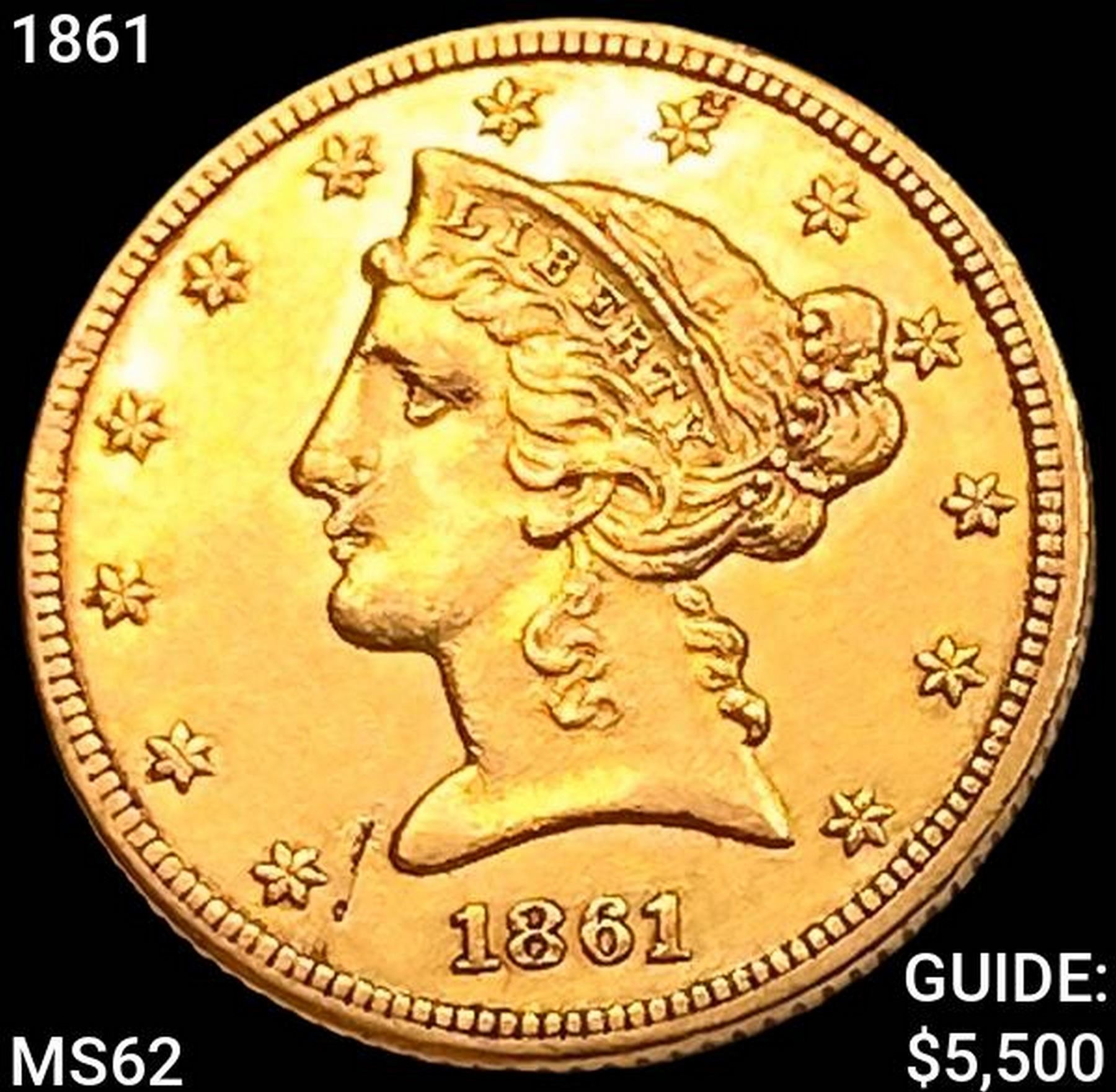 1861 $5 Gold Half Eagle UNCIRCULATED