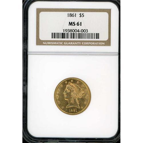From a mintage of 688,084 coins. This difficult no motto type is uncirculated and fully struck, with all of its original mint luster. Multiple small bagmarks, none of which is of importance but which combined, give us the current grade. Wholesale bids $1680,one sold this year at auction for $2070.