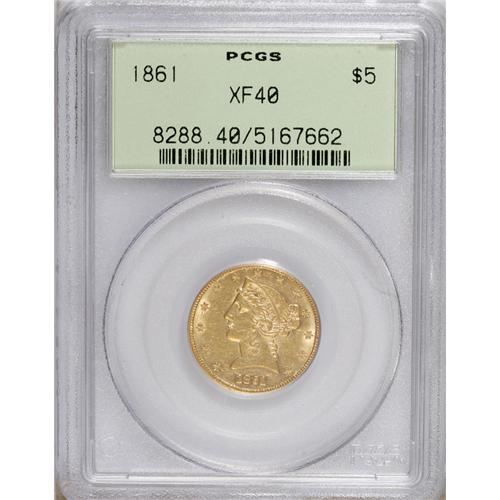 1861 $5 XF40 PCGS. PCGS Population (19/566). NGC C